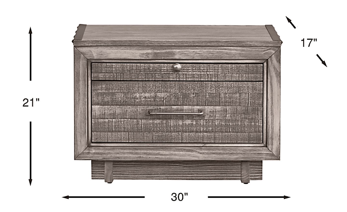 Contemporary sensibilities with touches of rustic design elements in the Wyatt Place nightstand bring an understated sophistication with a natural and holistic feel. Constructed of 100% solid wood with an organic grey finish, this nightstand features a drawer with a hidden component for jewelry and other small items, iron pulls, French dovetail joints and central mounted wood glides for support and longevity.