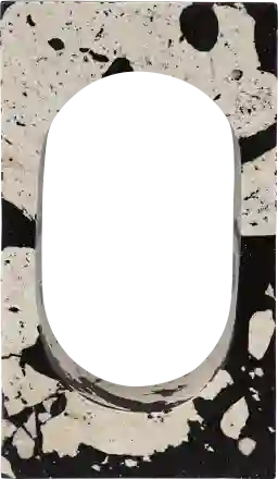 This piece is handcrafted from natural white coral stone, a material prized for its unique organic texture and timeless durability. It features a striking terrazzo-style pattern with black accents. Because coral stone is naturally porous, our care experts recommend dusting it regularly with a soft, dry cloth. To protect the stone's integrity, avoid using harsh chemicals or abrasive cleaners, which can dull the natural finish over time.