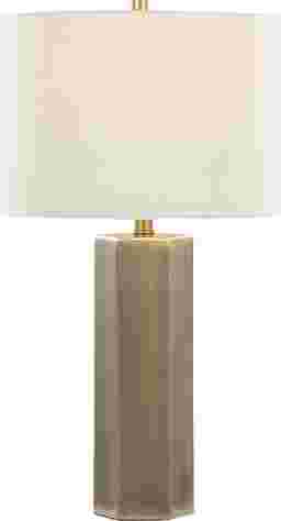 Illuminate your home with the Wykes Isle Brass Lamp, Set of 2, where Art Deco flair meets contemporary design. The geometric hexagonal base in antique brass brings a stylish retro touch, while the soft white fabric shade provides a warm ambiance. Partial assembly may be required.