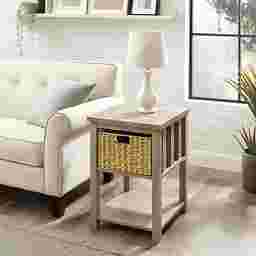 Make cleanup even easier with this mission-style Wylam side table in your living room or office. The rattan basket is perfect for tucking books remotes or electronic accessories out of sight. Use the lower shelf for cozy blankets during movie nights or easy access to family photo albums. You can trust the warp-resistant MDF wood and durable laminate build for its long-lasting quality. Pair with the matching entry and coffee tables for a complete rustic set. Customer assembly is required.