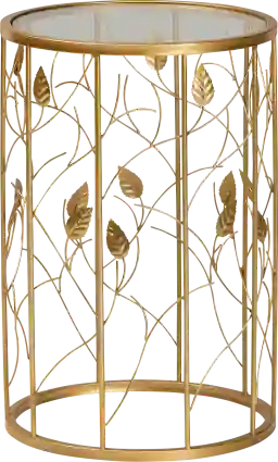 Accent your space with the luxurious and eye catching design of the Wyler end table. Comprised of a brushed gold finished metal frame fitted with a circular glass tabletop. Inspired by nature, the base showcases a unique leaf and vine design that allows light to easily flow throughout the room. Customer assembly is required.