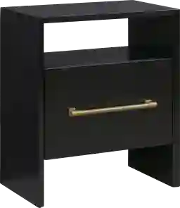 To enhance the sophisticated aesthetic of this nightstand, our design experts recommend pairing it with soft, light-colored neutrals—such as cream or light gray—to provide a striking contrast against the bold black finish. Incorporating other metallic gold accents through a bedside lamp or picture frame will also draw out the elegance of the gold-finished hardware, creating a cohesive and luxurious modern look.