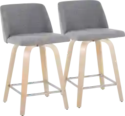 Comfort, modern simplicity, and classic lines define the appealing look of the Wymering I fixed-height counter stool. A padded upholstered swivel seat sits on fixed-height bent wood legs with a built-in footrest. Customer assembly is required.