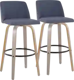 Comfort, modern simplicity, and classic lines define the appealing look of the Wymering III fixed-height barstool. A padded upholstered swivel seat sits on fixed-height bent wood legs with a built-in footrest. Customer assembly is required.