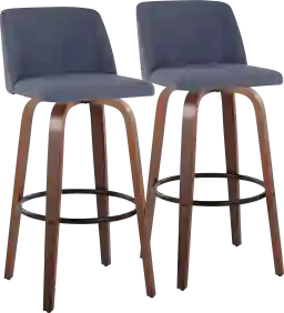 Comfort, modern simplicity, and classic lines define the appealing look of the Wymering V fixed-height barstool. A padded upholstered swivel seat sits on fixed-height bent wood legs with a built-in footrest. Customer assembly is required.