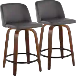 Comfort, modern simplicity, and classic lines define the appealing look of the Wymering VII fixed-height counter stool. A padded upholstered swivel seat sits on fixed-height bent wood legs with a built-in footrest. Customer assembly is required.