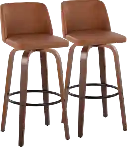 Comfort, modern simplicity, and classic lines define the appealing look of the Wymering XI fixed-height barstool. A padded upholstered swivel seat sits on fixed-height bent wood legs with a built-in footrest. Customer assembly is required.