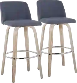 Comfort, modern simplicity, and classic lines define the appealing look of the Wymering XII fixed-height barstool. A padded upholstered swivel seat sits on fixed-height bent wood legs with a built-in footrest. Customer assembly is required.