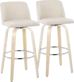 Comfort, modern simplicity, and classic lines define the appealing look of the Wymering XVII fixed-height barstool. A padded upholstered swivel seat sits on fixed-height bent wood legs with a built-in footrest. Customer assembly is required.
