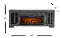 Boasting contemporary design, the Wyndell Way console displays sleek, clean lines to modernize your entertainment area. This gray console features two framed-glass doors which reveal storage space with an adjustable shelf inside. Enhancing its futuristic look, chrome-plated metal pulls and unique paneling on the doors create a modern aesthetic. Convenient pass-through holes for wire management make it easy to set up your electronic devices and keep cords neatly hidden. The electric fireplace features innovative flame effects on bricks and logs for added depth and 3D realism. A convenient remote control adjusts the flame and glow levels and includes a built-in timer (from 30 minutes to 60 hours). The adjustable thermostat ranges from 62 degrees to 82 degrees.