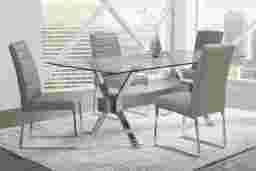 Wyndhall Chrome 5 Pc Rectangle Dining Room with Gray Chairs
