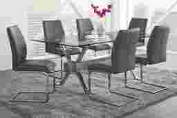 A chic choice for mealtimes, the Wyndhall side chair features a contemporary frame with distinctive eye appeal. A padded cushion is complemented by decorative stitching details, beautifully contrasting with the chrome base.