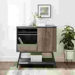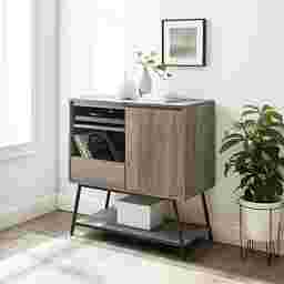 Enjoy a dance party as you slide into the living room in your comfy socks with your new records on full blast. You just brought home a 30" Wyndhurst accent cabinet with record storage, and knew it was the perfect sidekick to recreate all your favorite movie montages. An array of fixed and adjustable shelves offer plenty of space for your fan art figurines, groovy houseplants, and record collections while cord management keeps cables tidy. Enjoy the warm, pretty wood laminate finish whenever it catches the sun as you dance this way and that. Jam out with this accent cabinet in your bedroom, living room, dining room, or home office. Customer assembly is required.