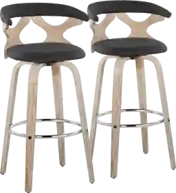 The unique cut-out design that forms the back of the Wyndmoor II fixed-height barstool adds considerable visual interest to this exciting option for bar height seating. The rounded back and padded upholstery adds comfort while the full motion swivel lends a functional and practical feature. Customer assembly is required.