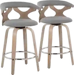 The unique cut-out design that forms the back of the Wyndmoor II fixed-height counter stool adds considerable visual interest to this exciting option for counter height seating. The rounded back and padded upholstery adds comfort while the full motion swivel lends a functional and practical feature. Customer assembly is required.