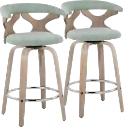 The white-washed finish and seafoam upholstery lend themselves perfectly to "Coastal Contemporary" or "Modern Farmhouse" aesthetics. To create a cohesive look, our experts recommend pairing these stools with light-toned woods, neutral area rugs, or metallic accents in brushed nickel or chrome to highlight the cool tones of the fabric.