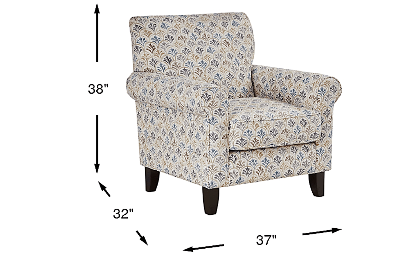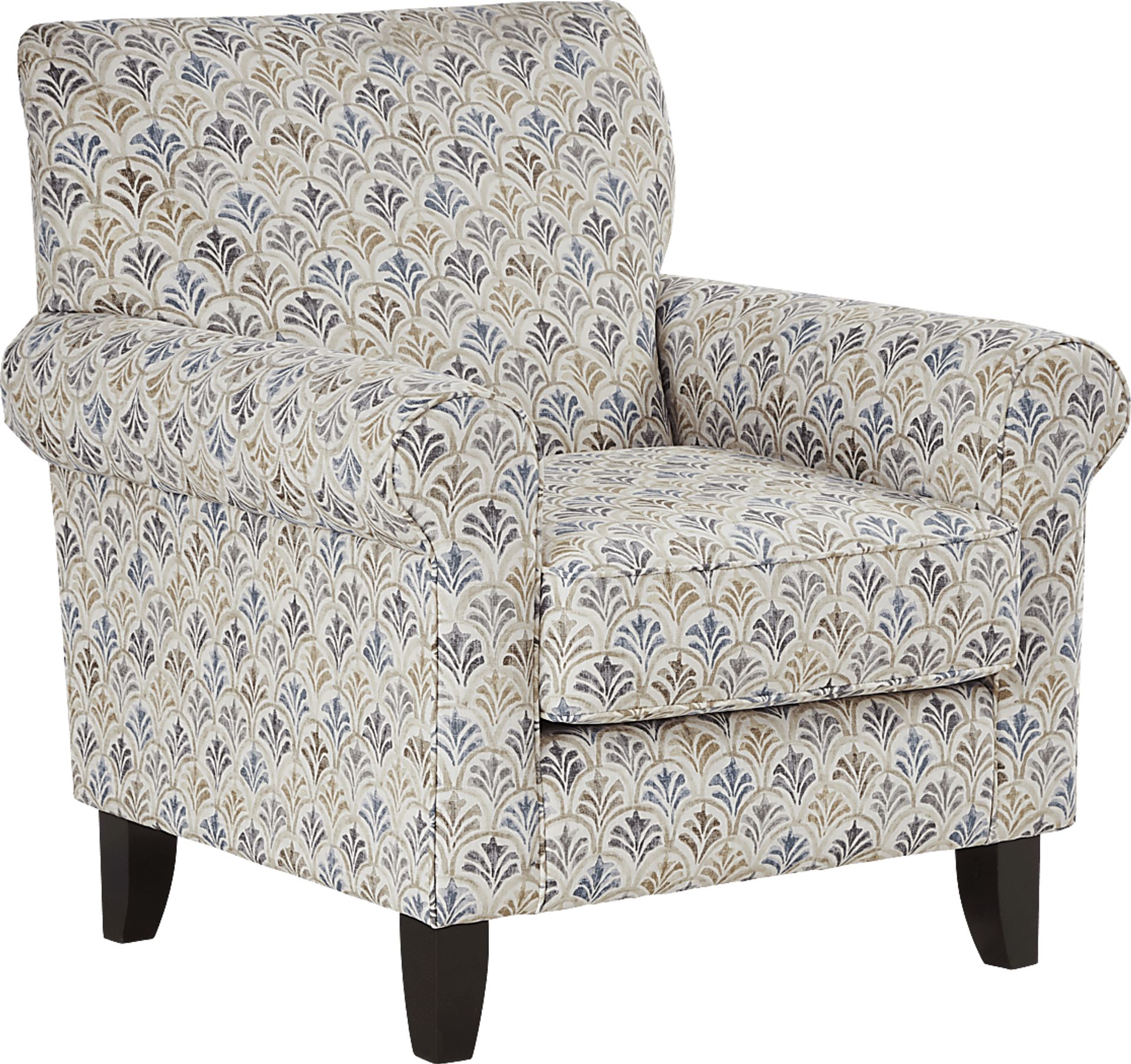The timeless feel and understated sophistication of the Wyndsor Way accent chair imparts a warming sense of intimacy and comfort. Contemporary in style and upholstered in beige with a scalloped palm leaf pattern, this piece features rolled arms and tapered wooden legs that enhance the welcoming aesthetic. Plus, the 100% cotton fabric offers exceptional comfort and easy maintenance. Upholstery:100% Cotton.