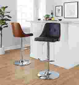 Inviting and refined with a hint of heritage design, the Wyndtop III adjustable barstool will add a touch of class to any space. The Wyndtop III features a contoured wooden back, a tufted faux leather swivel seat, and a built-in footrest that makes this stool both stylish and comfortable. Customer assembly is required.
