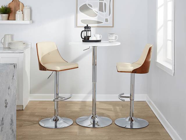 Inviting and refined with a hint of heritage design, the Wyndtop III adjustable barstool will add a touch of class to any space. The Wyndtop III features a contoured wooden back, a tufted faux leather swivel seat, and a built-in footrest that makes this stool both stylish and comfortable. Customer assembly is required.