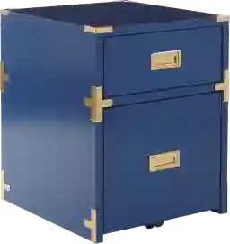 This piece is specifically designed with a "campaign style" aesthetic, featuring a vibrant finish and elegant metal hardware that allows it to blend seamlessly with home decor. Its contemporary look makes it versatile enough to serve as an accent table in a living room or bedroom while discreetly housing your files and office supplies in its two drawers.