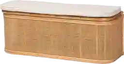 Natural rattan is quite resilient, though its textured weave may be attractive to curious cats. To maintain its appearance in a pet-friendly home, we recommend placing the bench in lower-traffic areas if your pets are prone to scratching. The solid-patterned upholstery is durable, and because the cushion is removable, it is easier to maintain and keep free of pet hair compared to fully upholstered storage furniture.