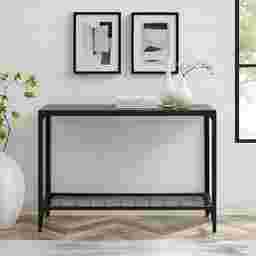 Add rustic flair to any room in your home with this angle ironed accent Wynyates entry table. Showcase your accessories decor or media on the upper and lower shelving with this durably constructed table. Crafted of powder coated metal and warp-resistant MDF you can rely on this piece to complement your home for years to come. Perfect for your front entry living room bedroom or even the kitchen. Customer assembly is required.