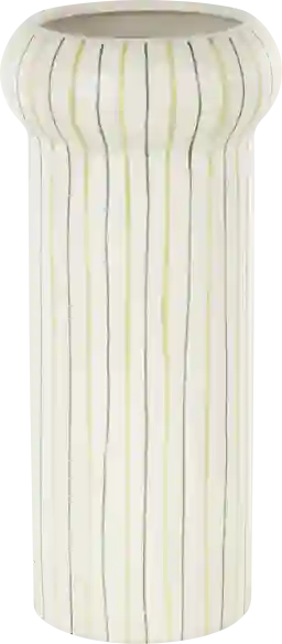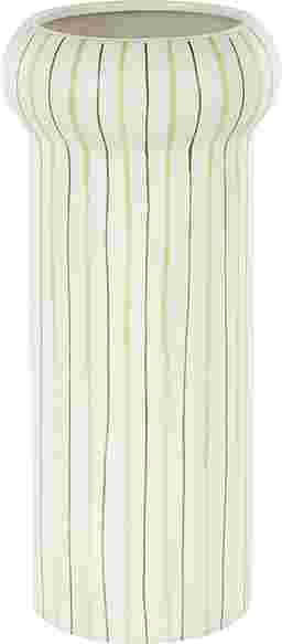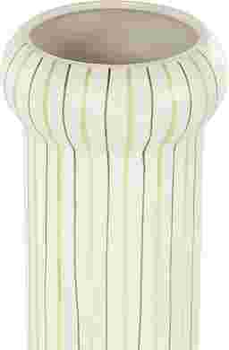 Inspired by sleek elegance and clean lines, a minimalistic design offers effortless luxury with monochromatic tones and bold, angular structures. The Xynas is made from high-quality ceramic and exudes elegance and durability. The round home decor vase boasts a modern glossy white finish with striking green linear patterns that come in different tones. This ceramic vase boasts a stunning striped pattern adding touch of sophistication to any room.