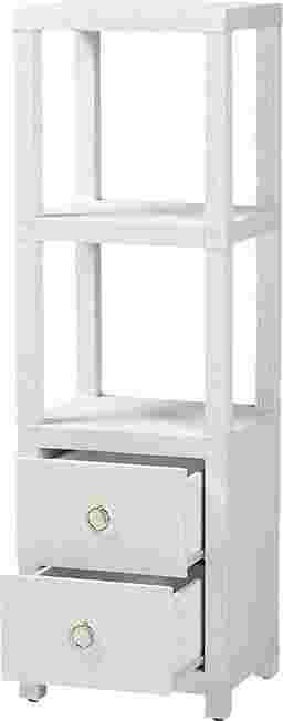 Invigorate your space with poise and personality of the lovely Yafer storage cabinet. This bohemian piece consists of a sturdy wood frame intricately adorned with handwoven grasscloth. Two drawers offer secure storage space while reserving two open shelves as a fantastic display area. The Yafer will arrive fully assembled and is fitted with graceful metal ring pulls for a touch of luxury. With a sleek presentation, the Yafer storage cabinet is sure to elevate any interior layout.Disclaimer: Grasscloth is a product of nature and may have variations in areas such as, but not limited to, color, pattern, grain and texture. The hair-like strands of wicker/wicker-like fiber are common due to the nature of the material.