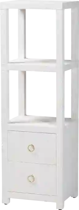 While the wood frame and metal hardware are built for durability, grasscloth is a natural fiber that can be sensitive to extreme environmental changes. In humid or coastal regions, we recommend placing this bookcase in a climate-controlled room. This helps preserve the integrity of the handwoven texture and prevents the natural wood components from expanding or contracting due to moisture.