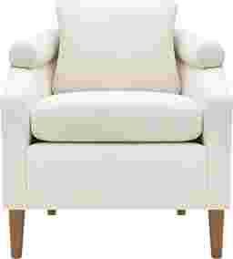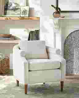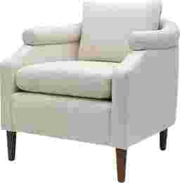 With a compact footprint of 30"W x 30"D, this chair is an excellent solution for space-conscious urban living. Its 30-inch width allows it to fit comfortably in tight corners, small apartment living rooms, or at the foot of a bed without overwhelming the room’s flow. The tapered brown legs provide a "leggy" profile, which creates a sense of openness by allowing you to see more floor space—a classic design trick for making smaller rooms feel larger.