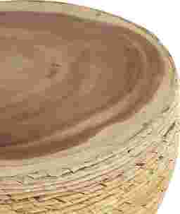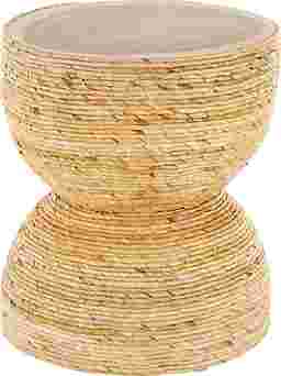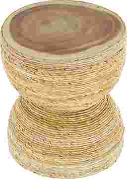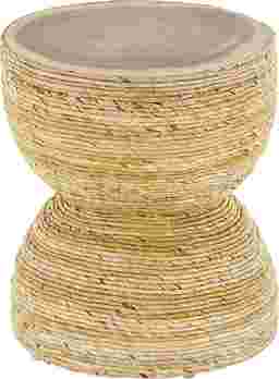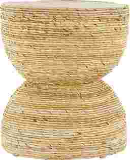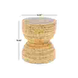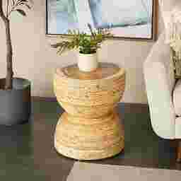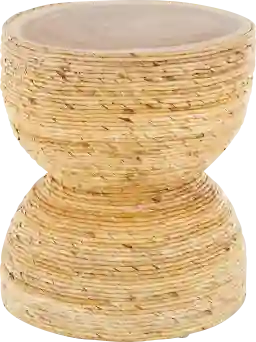 The Yerane End Table is the perfect addition to any home. Exuding timeless sophistication, this light brown side end table blends rich textures and warm hues for a refined, classic look. Handmade from banana leaf and mungur wood, it offers both durability and natural appeal. The round tabletop showcases a textured finish with warm brown tones, while the woven banana leaf design adds elegance and depth to any space. Measuring 16.35L x 16.35W x 18.65H inches and weighing 12.535 lbs, this accent table combines style with lasting functionality. Customer assembly is required.