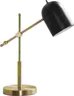 Introducing the Yewbar Black Lamp, perfect for brightening up any space in your home. Featuring a black metal shade, and a gold metal frame. This decorative accent piece is not only great for adding ambiance to your living room or bedroom, but it also serves as a functional task lamp for your desk. Add this contemporary brass metal lighting accent for a fashionable and practical upgrade in any room. Partial assembly may be required.
