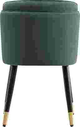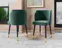 Timeless design and luxurious comfort embody the Yewex green side chair, in every way. At first glance, the dining chair catches your eye with its vintage style and smooth, sleek texture. When you look closer, this dining chair has so much more to offer. High-quality, rich velvet wraps around every curve of the seat and back. Precise stitching creates every plush pleat that defines this comfortable and stylish seat. The slender, solid wood legs are precisely coated in black lacquer and detailed with chic gold fennules, that complete the versatile look of your new favorite home accent.