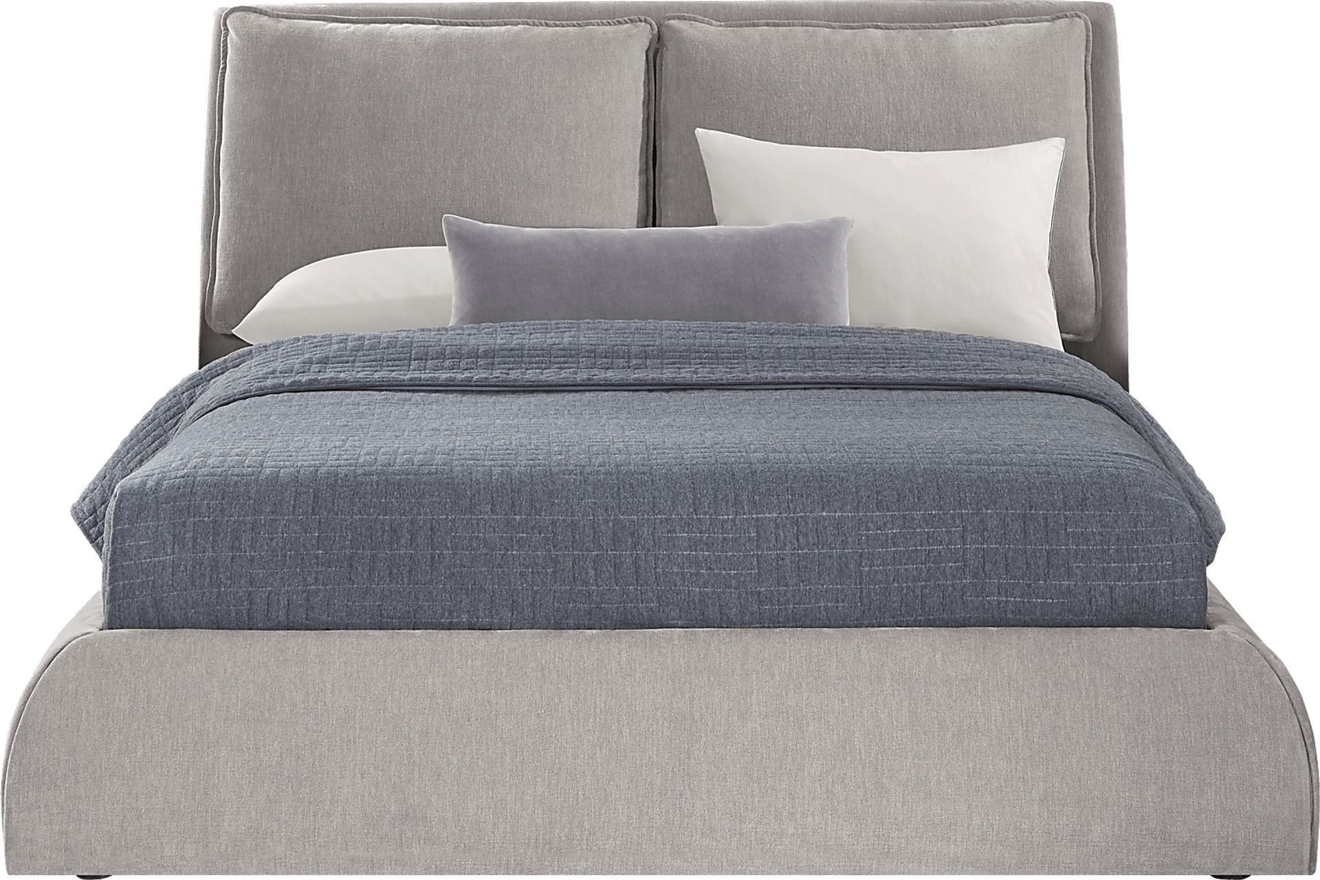 A refreshing and playful style flows through the soft lines and bending curves of the York Mills bed. Fully upholstered in gray, this soothing piece features two cushions with welted seams attached to its sloped headboard. The bed's base mirrors the soft accents of the headboard with gentle arcing curves on each side. Convenient USB ports are integrated into the headboard for easy charging.