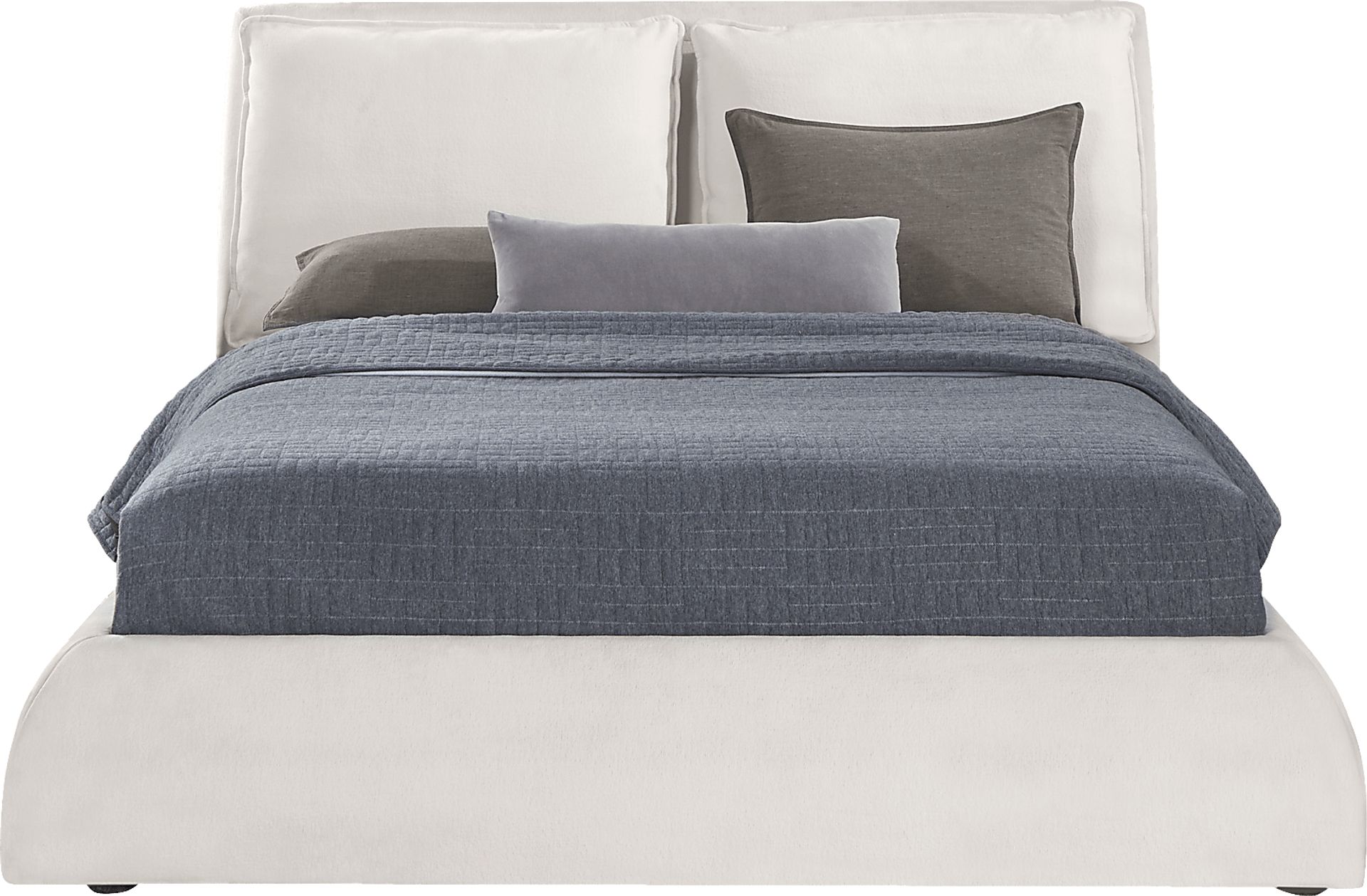 A refreshing and playful style flows through the soft lines and bending curves of the York Mills bed. Fully upholstered in white, this soothing piece features two cushions with welted seams attached to its sloped headboard. The bed's base mirrors the soft accents of the headboard with gentle arcing curves on each side. Convenient USB ports are integrated into the headboard for easy charging.
