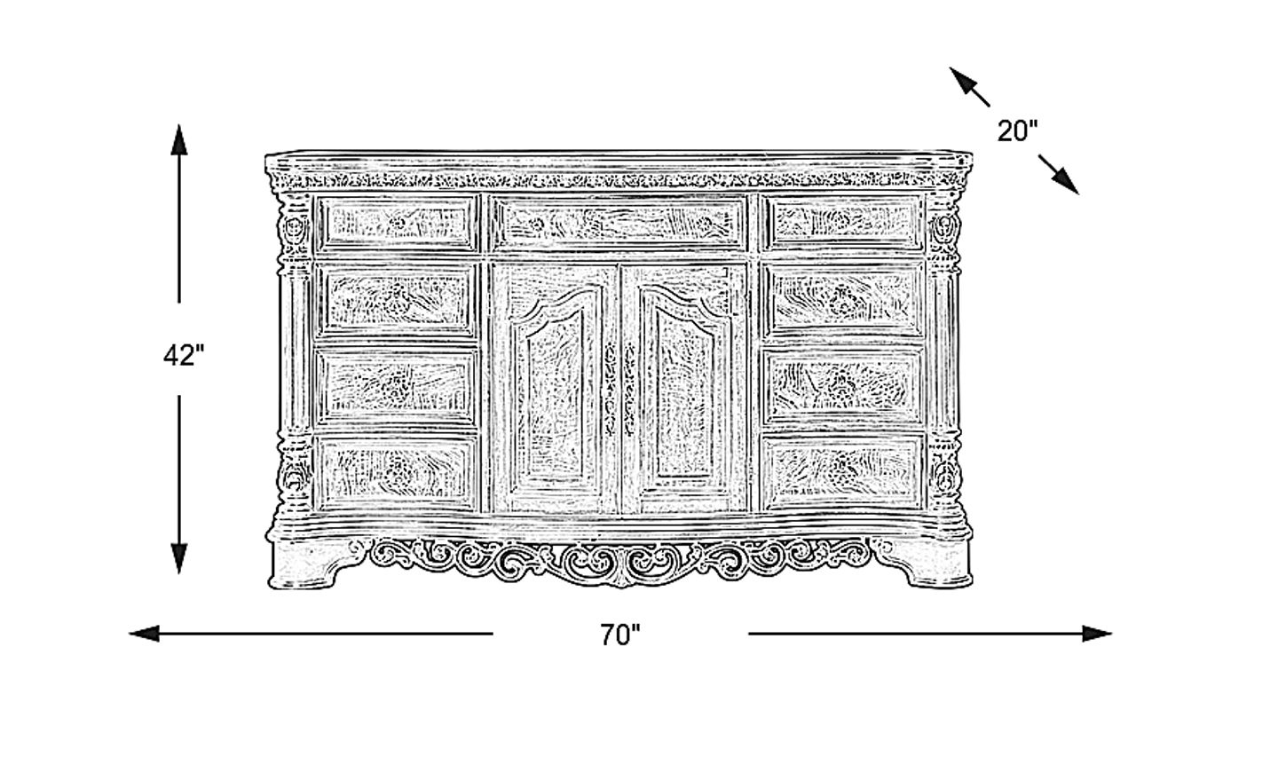 At 70 inches wide and 42 inches tall, this is a substantial piece of furniture designed to anchor a large primary suite or an expansive bedroom. For optimal functionality and flow, we recommend placing it against a primary wall with at least 36 to 48 inches of clearance in front of the unit. This ensures you have ample room to fully extend the drawers and swing open the cabinet doors without obstructing walkways or feeling cramped in your space.