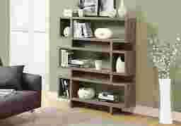 Add some pizzazz to your living space with this Yorkwood bookcase! This modern dark taupe look of wood bookcase has ample room for displaying pictures, decorative pieces and even books. Both beautiful and versatile, this bookcase can be placed in the center of a room to separate and provide more intimacy as it is finished on all sides. With a sturdy structure and innovative features this bookcase will definitely add visual appeal to any decor. Customer assembly required.