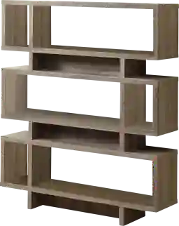 Add some pizzazz to your living space with this Yorkwood bookcase! This modern dark taupe look of wood bookcase has ample room for displaying pictures, decorative pieces and even books. Both beautiful and versatile, this bookcase can be placed in the center of a room to separate and provide more intimacy as it is finished on all sides. With a sturdy structure and innovative features this bookcase will definitely add visual appeal to any decor. Customer assembly required.