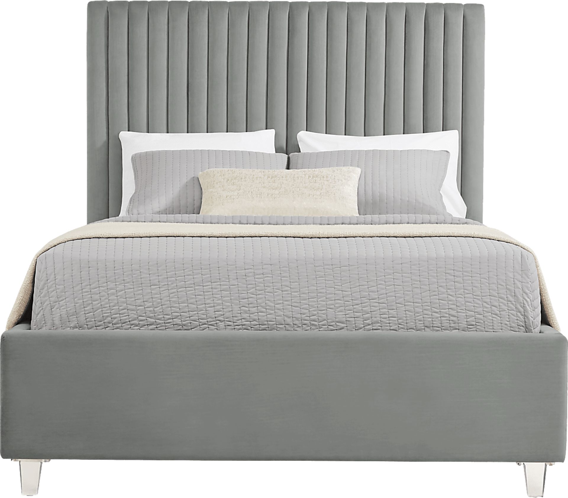 Glamorous, contemporary and ready to transform your bedroom space, the Zada queen bed blends a bit of modern charm with classic design. The upholstered panel headboard and footboard come in a neutral gray color that gives you a timeless look to be enjoyed for years to come. Upholstery: 100% Polyester. Mattress and foundation (if required) sold separately.