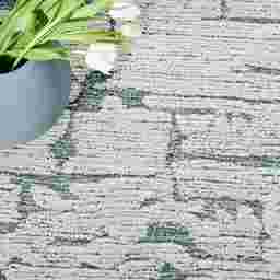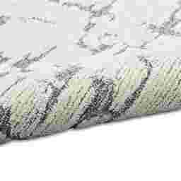 This rug features a high-low textured pile, which means the fibers are woven at varying heights to create a multi-dimensional, tactile surface. This technique adds significant visual depth and an organic, weathered-stone feel to the abstract pattern. It provides a more sophisticated, "designer" look than a standard flat-weave rug while maintaining a comfortable, casual feel underfoot.
