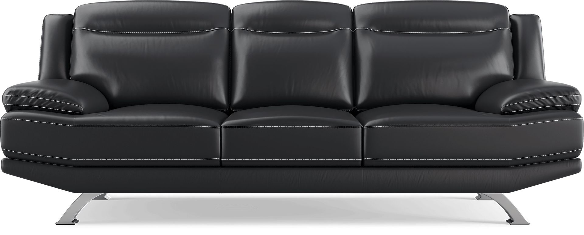 Contemporary style. Plush comfort. The Zamora sofa artfully combines modern design with practical usability for a cozy chic result that transforms your living room into a sophisticated entertaining space. Featuring luxuriously supple black top grain leather covering where the body touches, this chic sofa is further accented by contrasting stitching detail. Plush pillowtop arms and striking chrome finished legs represent the careful balance of practicality and style. Upholstery: Top grain leather where the body touches and polyurethane fabric sides and backs.