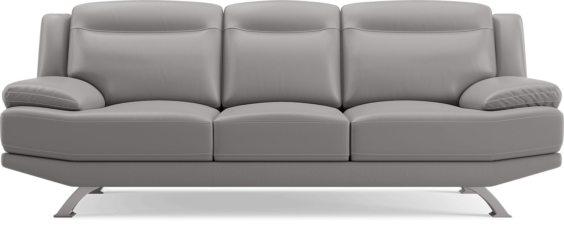 Contemporary style. Plush comfort. The Zamora sofa artfully combines modern design with practical usability for a cozy chic result that transforms your living room into a sophisticated entertaining space. Featuring luxuriously supple gray top grain leather covering where the body touches, this chic sofa is further accented by stitching detail. Plush pillowtop arms and striking chrome finished legs represent the careful balance of practicality and style. Upholstery: Top grain leather where the body touches and polyurethane fabric sides and backs.