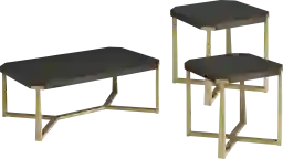This versatile set includes one rectangular cocktail table and two matching end tables. It is designed to provide a cohesive, curated look for your seating area, offering both a central surface for your living room and functional side tables for lamps or decor.