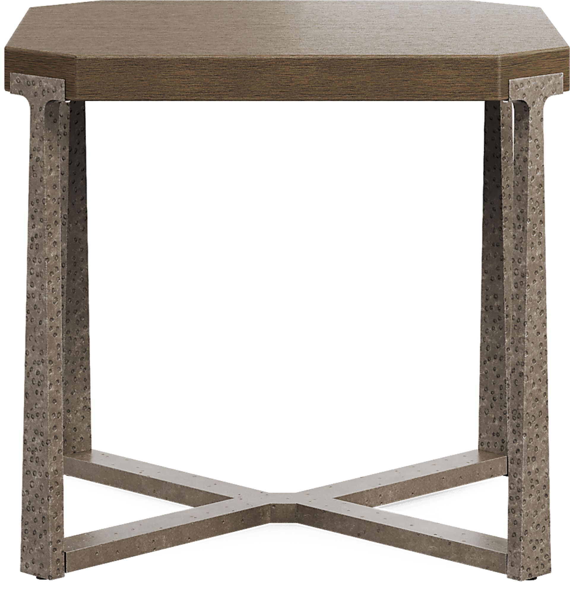 A chic complement to your sofa or chair, the Zandra end table gives off a modern appearance. Crafted of walnut veneers in a gray finish, its tabletop is the perfect size for a few drinks. Silver-finished metal legs form a striking X shape that adds to this table's sharp look.