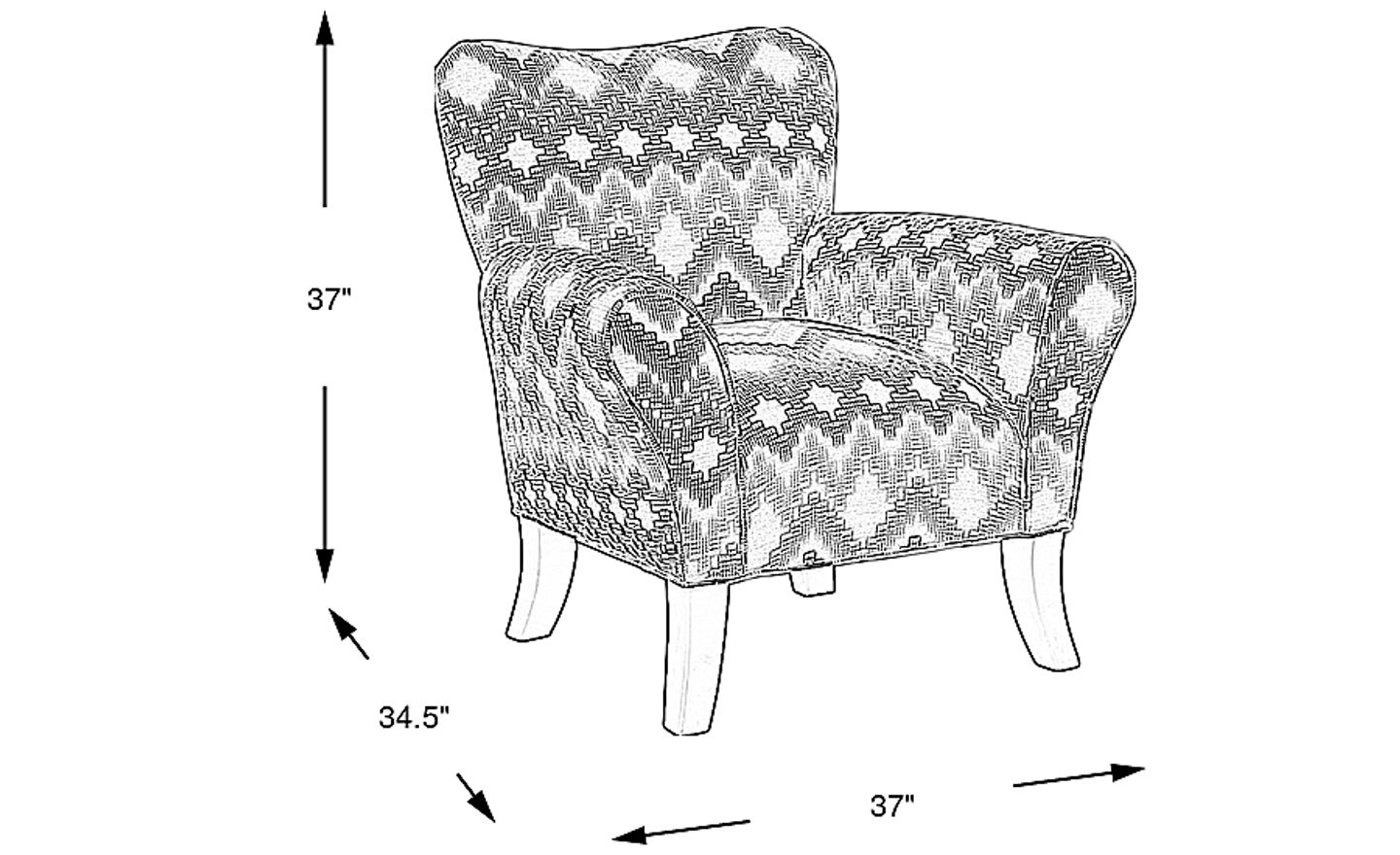 With splashes of blue, red and beige, the Zane accent chair offers a sublime look and casual comfort. Upholstered with fabric that features a contemporary diamond pattern, this chair has a stunning silhouette with elegantly shaped flarearms. Neatly tapered legs in a dark finish deliver the ultimate final touch. Upholstery: 92% polyester, 8% linen