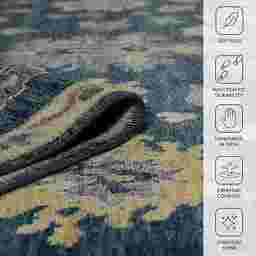 Wool is a highly breathable, moisture-wicking fiber that naturally helps regulate indoor humidity by absorbing and releasing moisture without feeling damp to the touch. This makes it an excellent choice for coastal homes or humid regions where synthetic materials might trap heat. Because high-quality wool is naturally resistant to mold and mildew, this rug will maintain its 0.5-inch pile height and vibrant blue and yellow tones even in more moisture-prone environments.