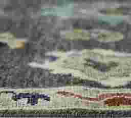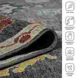The traditional Oriental pattern and versatile palette of gray, ivory, and bold accents allow this rug to bridge different design styles. In a traditional setting, it complements rich wood finishes and classic silhouettes. For a more contemporary or "Boho" look, use the rug's multi-colored accents (blue, red, and yellow) to pull in vibrant throw pillows or wall art, creating a curated, eclectic feel that grounds the room's more modern elements.