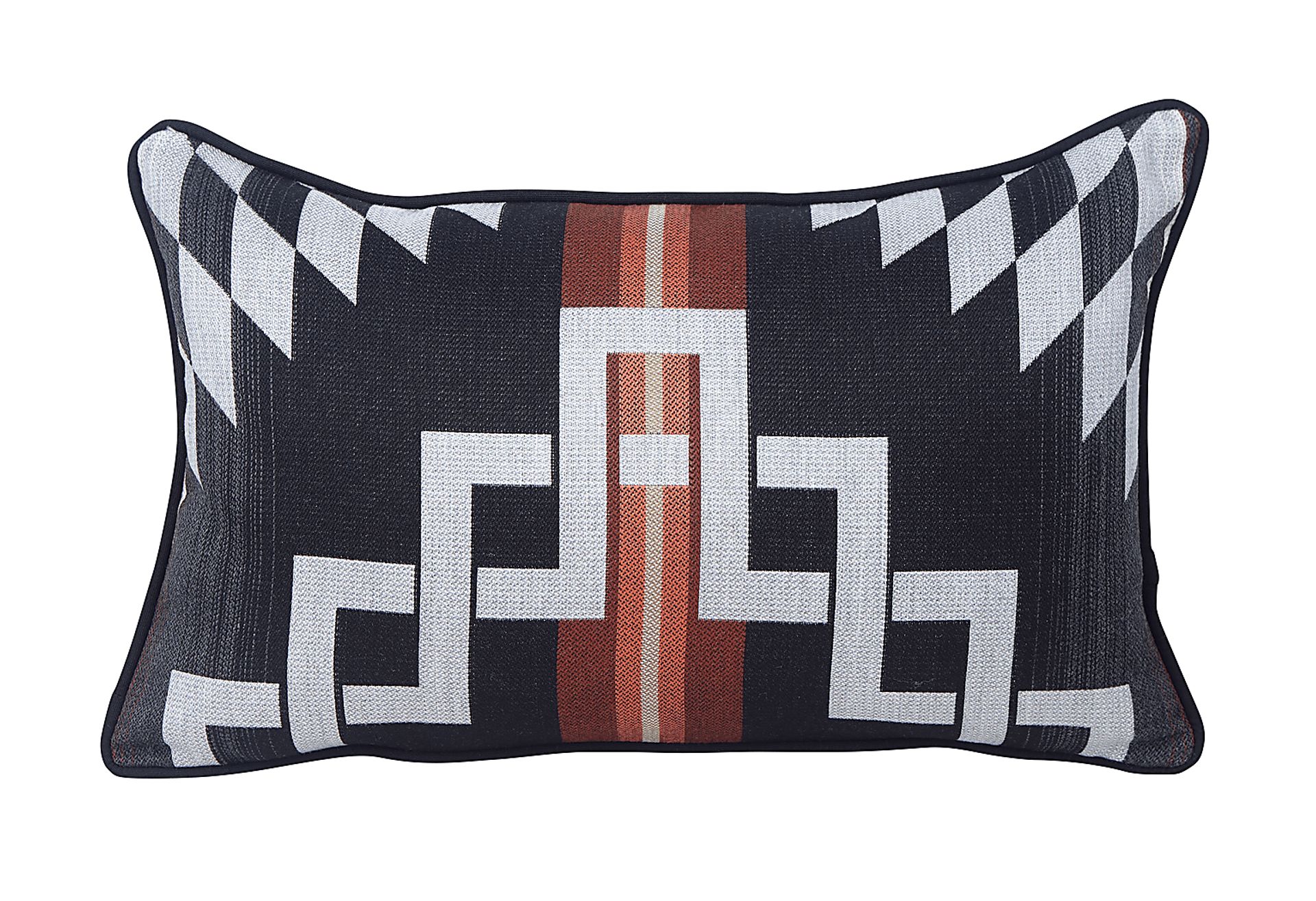 Whether inside your home or on your patio, you can complete any seating with the decorative Zapotec accent pillow. Ideal for lumbar support, this pillow features water and fade resistant Sunbrella fabric for enhanced durability. Its geometric motif is rendered in shades of black, ivory, gray and maroon.