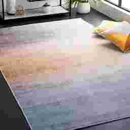 To maintain the vibrant abstract pattern and integrity of the synthetic fibers, this rug should be machine-washed with cold water using a commercial-sized front-load machine. We recommend using a liquid detergent that does not contain bleach. For the longest lifespan, line drying is preferred; however, if you use a dryer, ensure it is set to an air-only dry cycle with no heat to prevent damage to the non-slip backing.