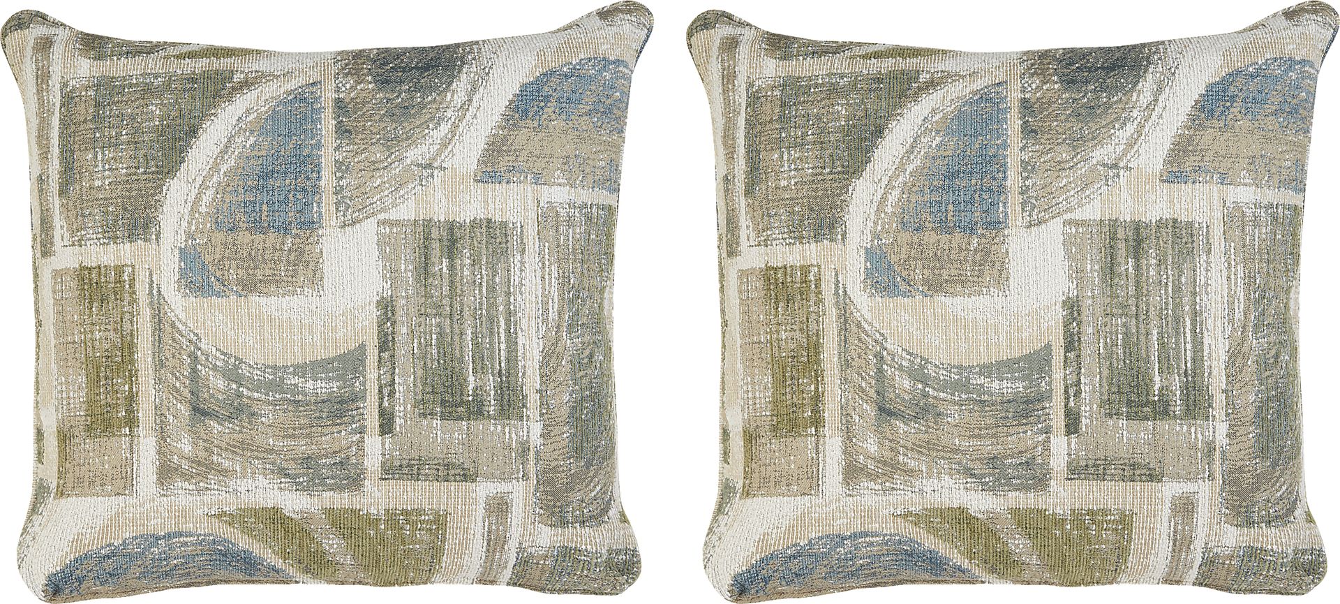 The uplifting energy of joyous brushstrokes meets the calming power of a soothing palette in the Zaybin pillow pair's captivating dance of expression and style. Curves and angles in moss green, blue and beige bring abstract intrigue anywhere this accent appears. Upholstery: 100% Polyester.